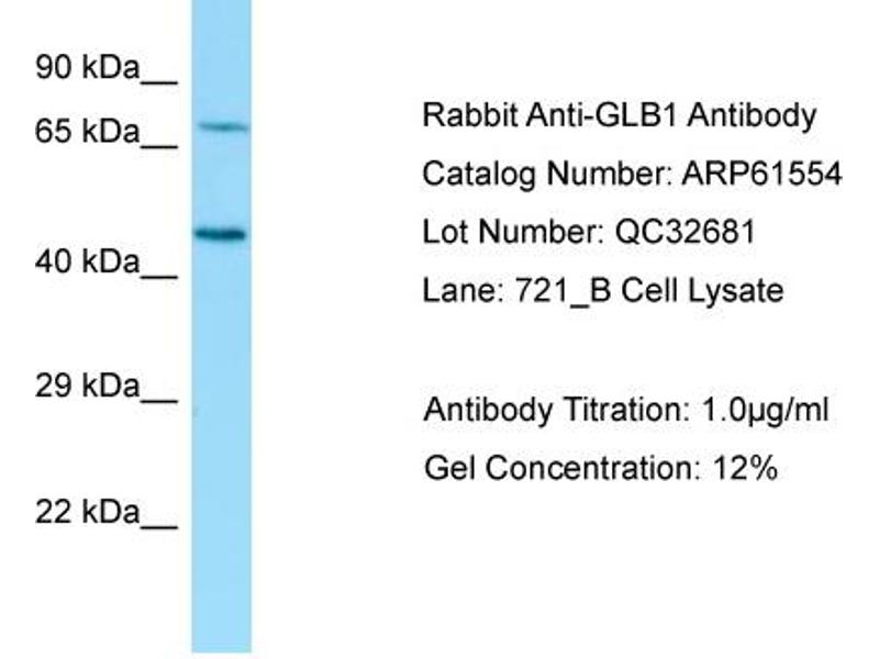 - This is a rabbit polyclonal antibody against GLB1. It was validated on Western Blot.
