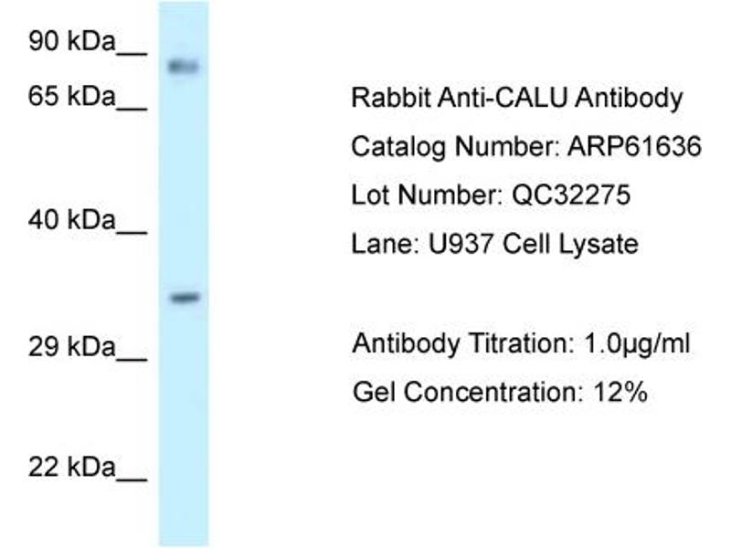 - This is a rabbit polyclonal antibody against CALU. It was validated on Western Blot.
