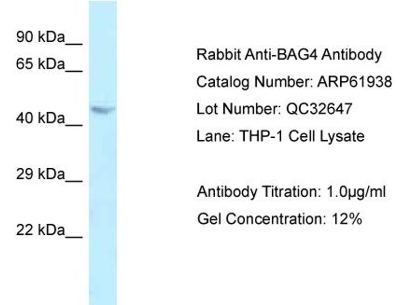 This is a rabbit polyclonal antibody against BAG4. It was validated on Western Blot.
