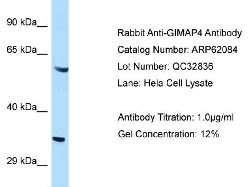 - This is a rabbit polyclonal antibody against GIMAP4. It was validated on Western Blot.