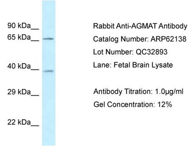 - This is a rabbit polyclonal antibody against AGMAT. It was validated on Western Blot.