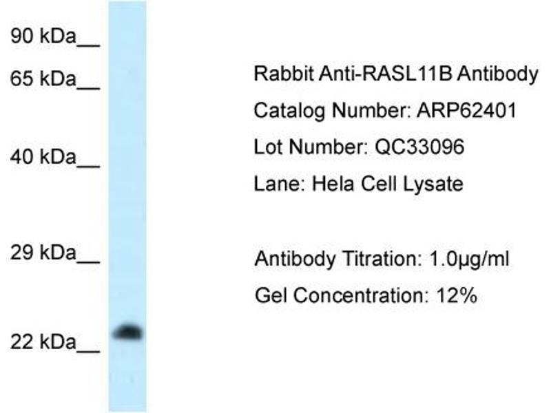- This is a rabbit polyclonal antibody against RASL11B. It was validated on Western Blot.