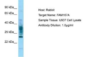 This is a rabbit polyclonal antibody against FAM167A. It was validated on Western Blot.