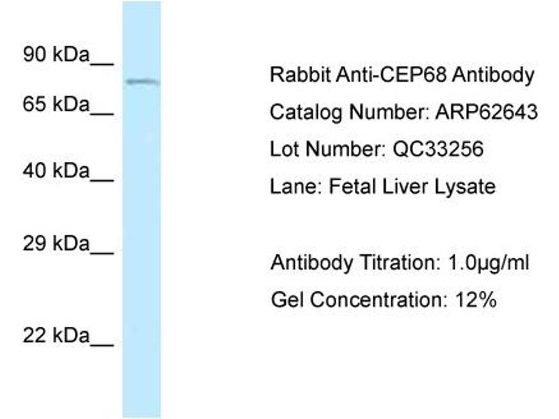 - This is a rabbit polyclonal antibody against CEP68. It was validated on Western Blot.