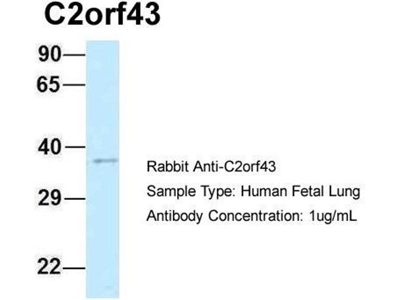 - This is a rabbit polyclonal antibody against C2orf43. It was validated on Western Blot.