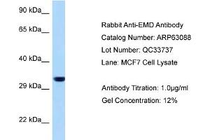 This is a rabbit polyclonal antibody against EMD. It was validated on Western Blot.