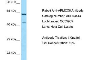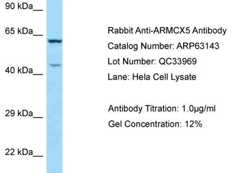 - This is a rabbit polyclonal antibody against ARMCX5. It was validated on Western Blot.