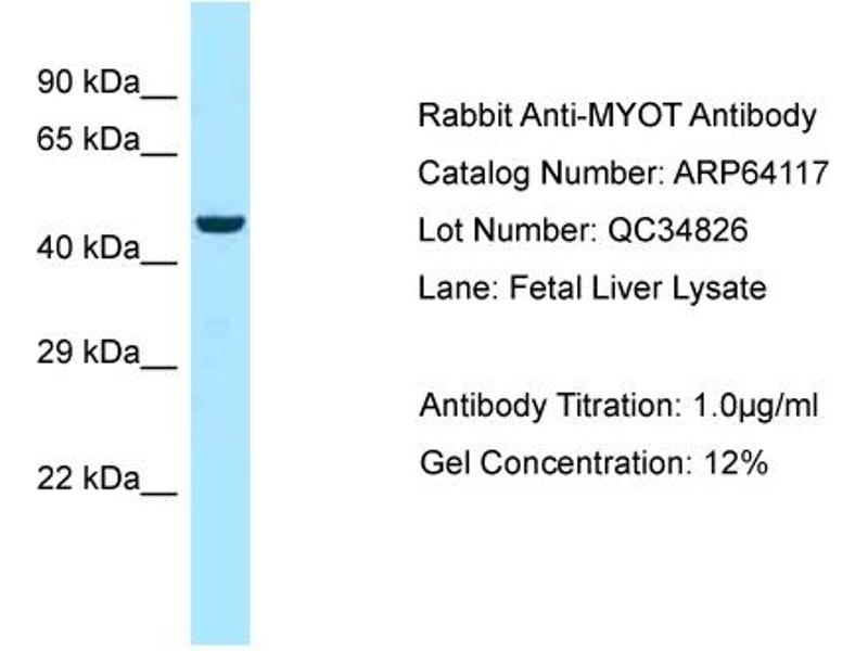 - This is a rabbit polyclonal antibody against MYOT. It was validated on Western Blot.