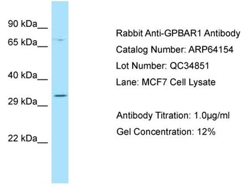 - This is a rabbit polyclonal antibody against GPBAR1. It was validated on Western Blot.