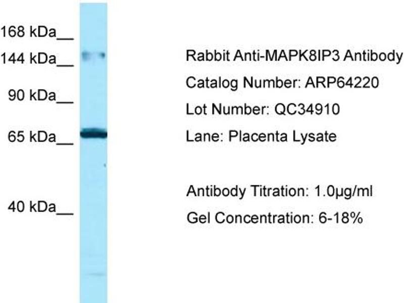 - This is a rabbit polyclonal antibody against MAPK8IP3. It was validated on Western Blot.