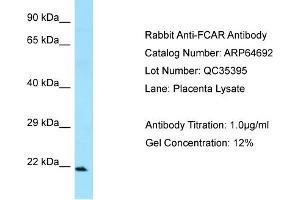 - This is a rabbit polyclonal antibody against FCAR. It was validated on Western Blot.