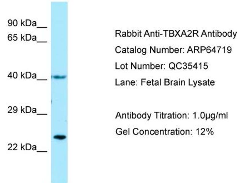This is a rabbit polyclonal antibody against TBXA2R. It was validated on Western Blot.