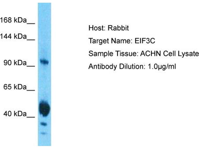 This is a rabbit polyclonal antibody against EIF3C. It was validated on Western Blot.