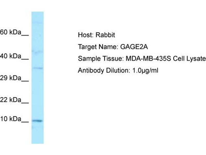 - This is a rabbit polyclonal antibody against GAGE2A. It was validated on Western Blot.