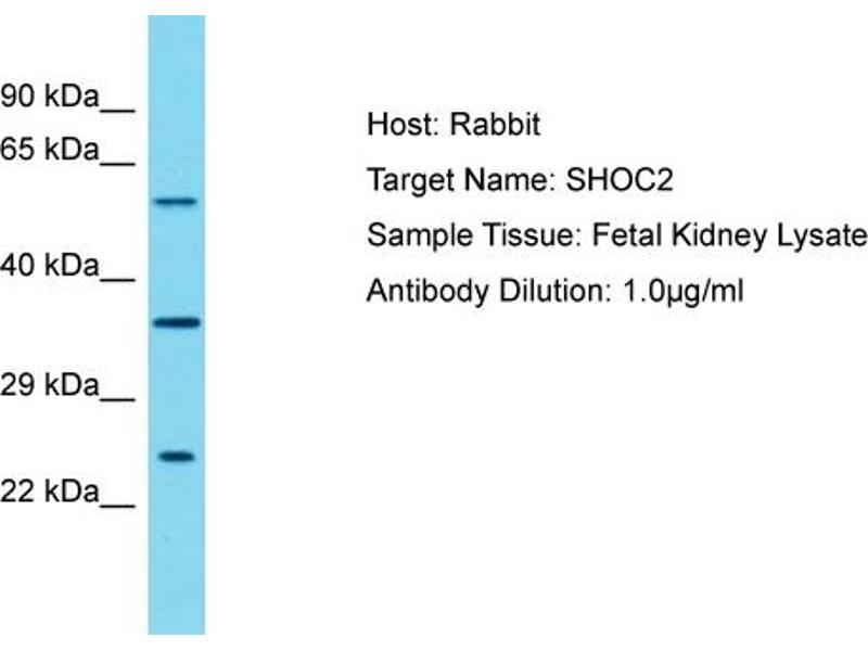 This gene encodes a protein that consists almost entirely of leucine-rich repeats, a domain implicated in protein-protein interactions. The protein may function as a scaffold linking RAS to downstream signal transducers in the RAS/ERK MAP kinase signaling cascade. Mutations in this gene have been associated with Noonan-like syndrome with loose anagen hair. Alias Symbols: SIAA0862, SOC2, SUR8 Protein Interaction Partner: MRAS, HUWE1, UBC, RAF1, ESR1, APP, Shoc2, MYC, ERBB2IP, KRAS, HRAS, NRAS, Protein Size: 536