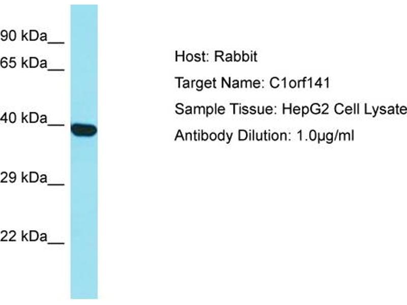 This is a rabbit polyclonal antibody against C1orf141. It was validated on Western Blot.