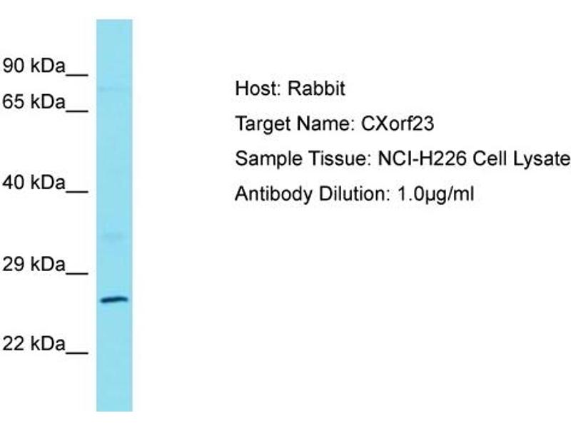 This is a rabbit polyclonal antibody against CXorf23. It was validated on Western Blot.