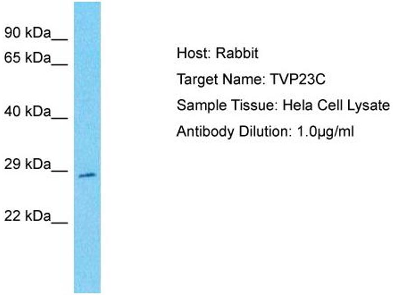 This is a rabbit polyclonal antibody against TVP23C. It was validated on Western Blot.