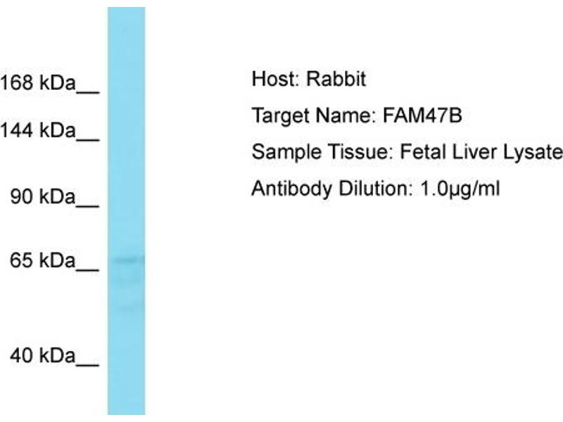 This is a rabbit polyclonal antibody against FAM47B. It was validated on Western Blot.