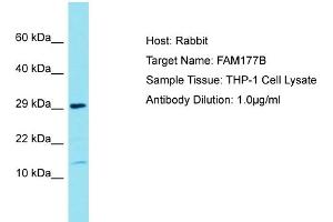 This is a rabbit polyclonal antibody against FAM177B. It was validated on Western Blot.