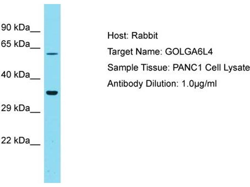 This is a rabbit polyclonal antibody against GOLGA6L4. It was validated on Western Blot.
