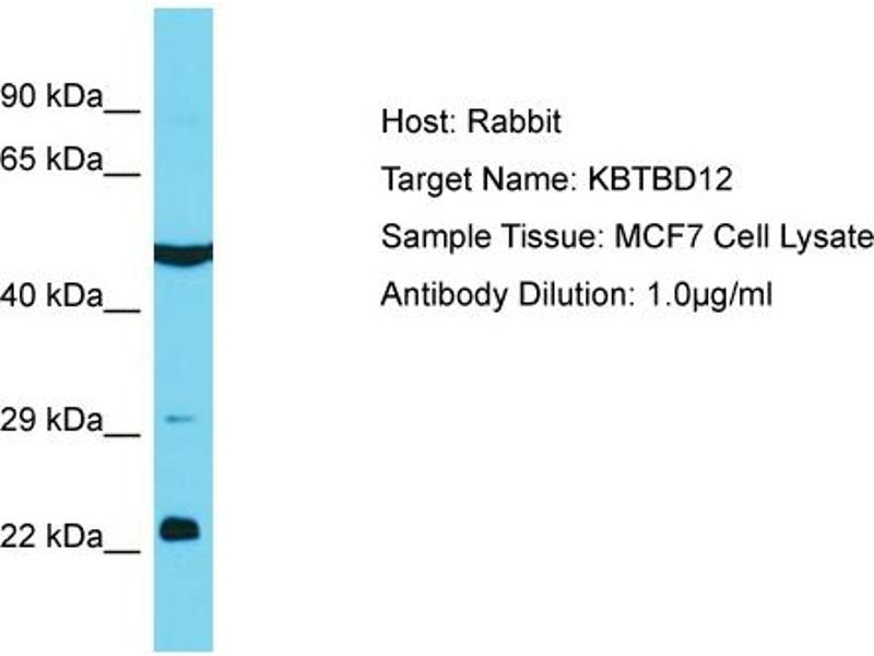 This is a rabbit polyclonal antibody against KBTBD12. It was validated on Western Blot.