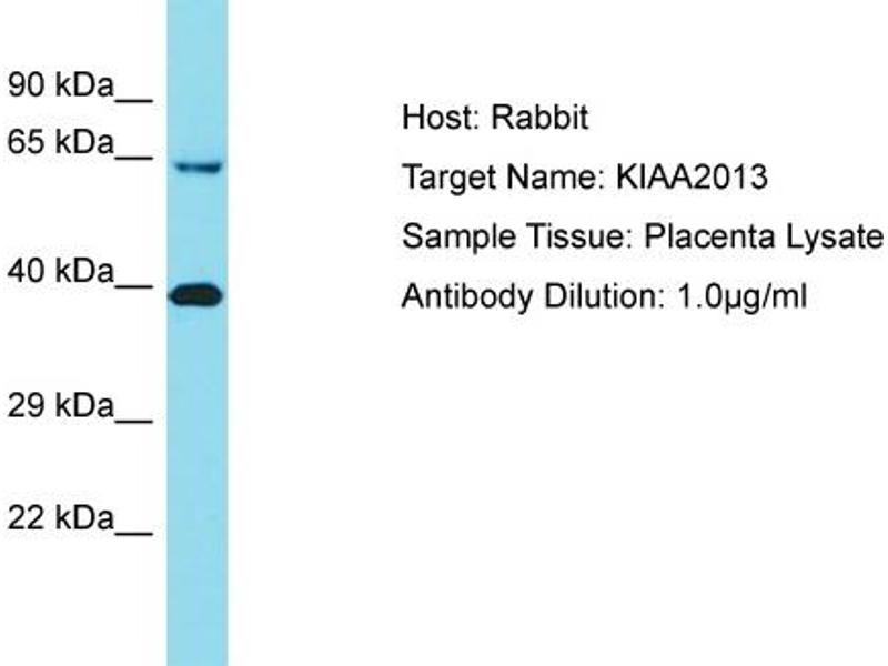- This is a rabbit polyclonal antibody against KIAA2013. It was validated on Western Blot.