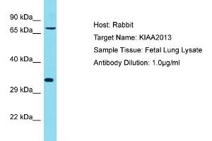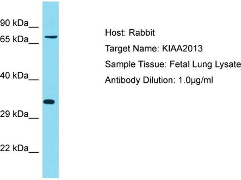 - This is a rabbit polyclonal antibody against KIAA2013. It was validated on Western Blot.