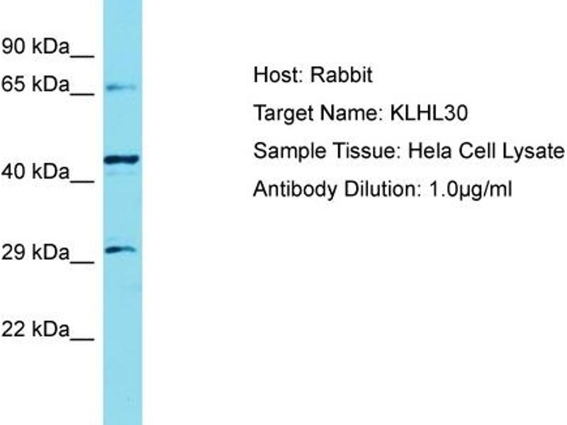 This is a rabbit polyclonal antibody against KLHL30. It was validated on Western Blot.