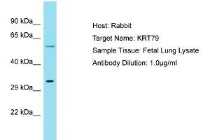 This anti-Cytokeratin 79 antibody is a Rabbit Polyclonal antibody detecting Cytokeratin 79 in WB. Suitable for Human, Mouse, Cow, Dog, Horse, Pig, Rabbit and Rat.