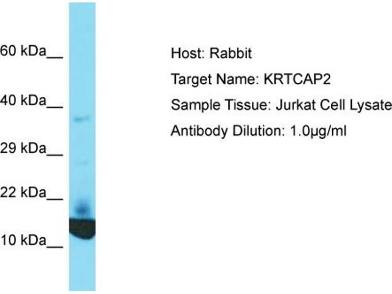 The Rabbit Polyclonal anti-KRTCAP2 antibody (ABIN2791635) specifically detects KRTCAP2 in WB.