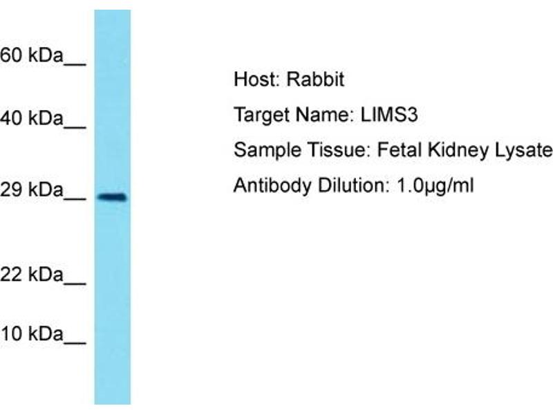 This is a rabbit polyclonal antibody against LIMS3. It was validated on Western Blot.