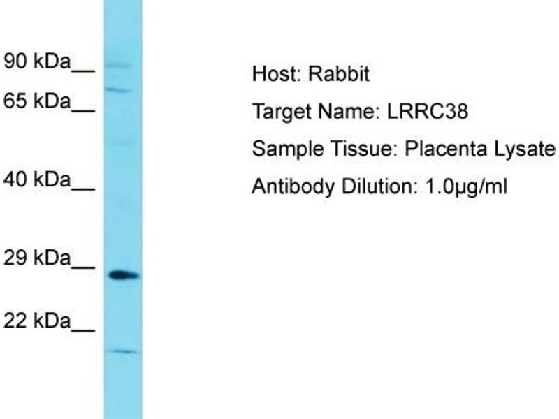 This is a rabbit polyclonal antibody against LRRC38. It was validated on Western Blot.