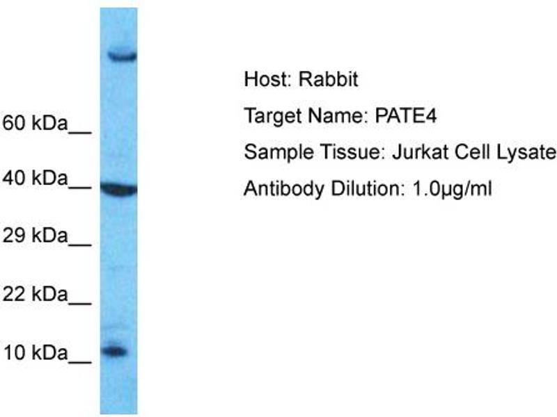 This is a rabbit polyclonal antibody against PATE4. It was validated on Western Blot.