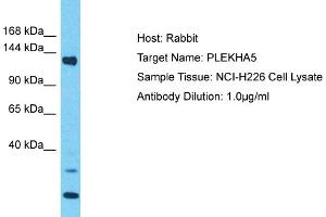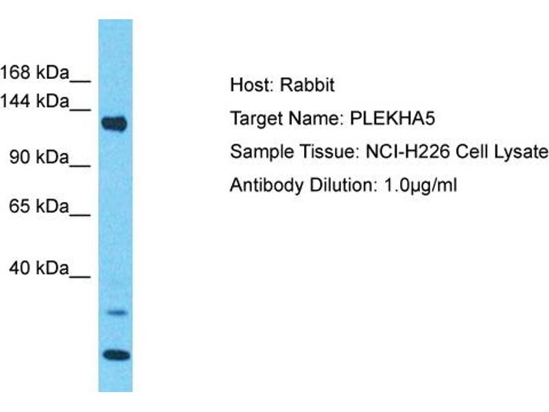 This is a rabbit polyclonal antibody against PLEKHA5. It was validated on Western Blot.
