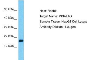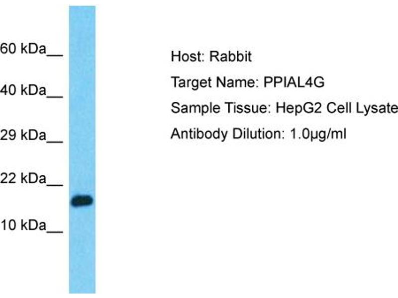 This Rabbit Polyclonal antibody specifically detects PPIAL4G in WB. It exhibits reactivity toward Human, Mouse, Cow, Dog, Goat, Guinea Pig, Horse, Rat and Sheep.