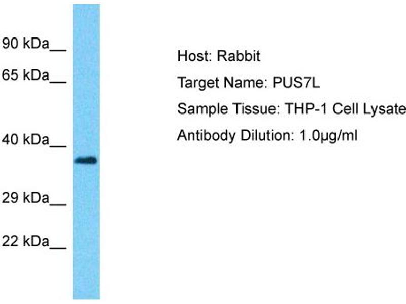 This is a rabbit polyclonal antibody against PUS7L. It was validated on Western Blot.
