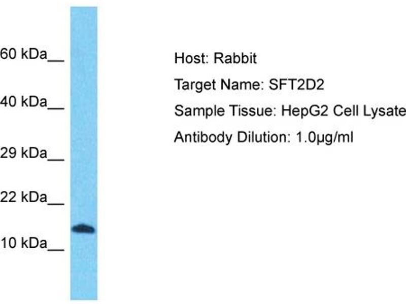 SFT2D2 may be involved in fusion of retrograde transport vesicles derived from an endocytic compartment with the Golgi complex. Alias Symbols: UNQ512, dJ747L4.C1.2 Protein Interaction Partner: UBC, Protein Size: 160