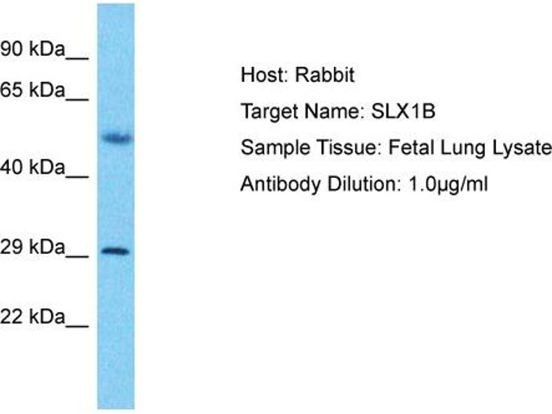 This gene encodes a protein that is an important regulator of genome stability. The protein represents the catalytic subunit of the SLX1-SLX4 structure-specific endonuclease, which can resolve DNA secondary structures that are formed during repair and recombination processes. Two identical copies of this gene are located on the p arm of chromosome 16 due to a segmental duplication, this record represents the more telomeric copy. Alternative splicing results in multiple transcript variants. Read-through transcription also occurs between this gene and the downstream SULT1A4 (sulfotransferase family, cytosolic, 1A, phenol-preferring, member 4) gene. Protein Interaction Partner: SLX4, THAP11, DUSP10, TUBA1B, LOC344382, EME1, SLX4IP, SLIRP, MUS81, GEMIN6, PAGR1, FKBP10, GEMIN4, DDX20, TIMM17B, PSME3, SLC25A13, HUWE1, PSMD6, CUL1, UQCRC2, SMN1, S100A8, RAN, PSMD11, PSMB5, PSMB3, PSMB2, PSMB1, PSMA7, PSMA6, PSMA5, PSMA4, PSMA3, PSMA Protein Size: 275
