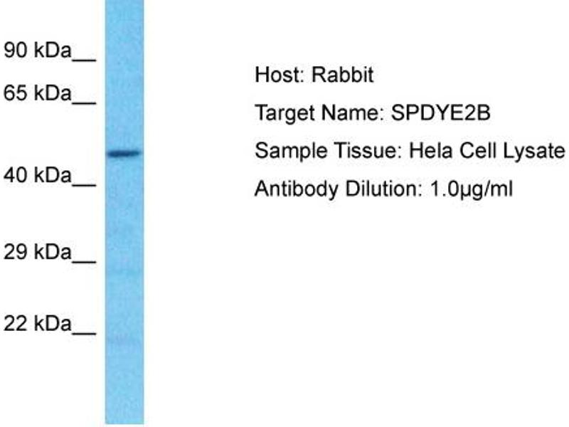 The Rabbit Polyclonal anti-SPDYE2B antibody is suitable to detect SPDYE2B in samples from Human and Mouse. It has been validated for WB.