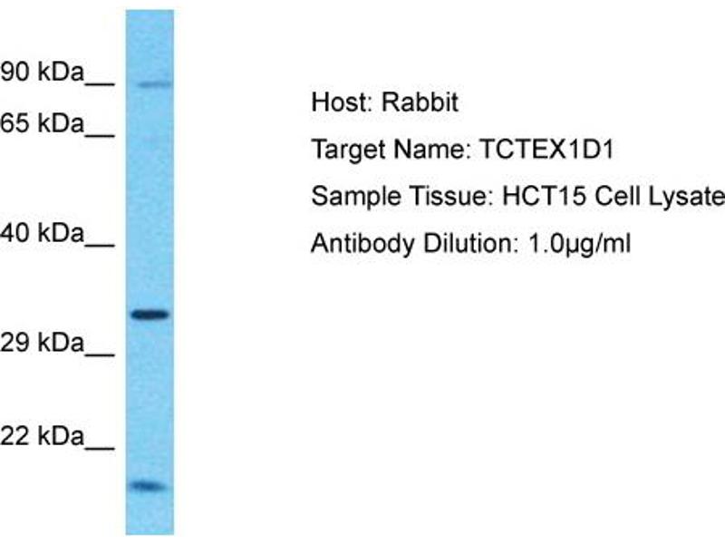 This is a rabbit polyclonal antibody against TCTEX1D1. It was validated on Western Blot.