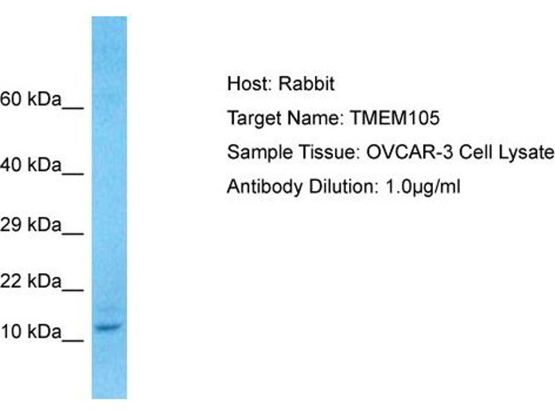 This is a rabbit polyclonal antibody against TMEM105. It was validated on Western Blot.