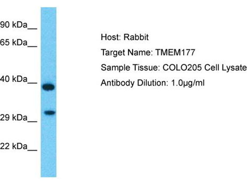 This is a rabbit polyclonal antibody against TMEM177. It was validated on Western Blot.