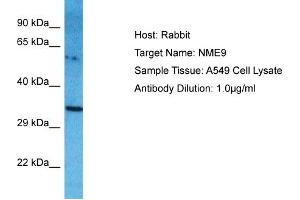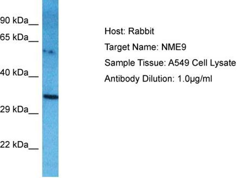 This is a rabbit polyclonal antibody against NME9. It was validated on Western Blot.