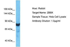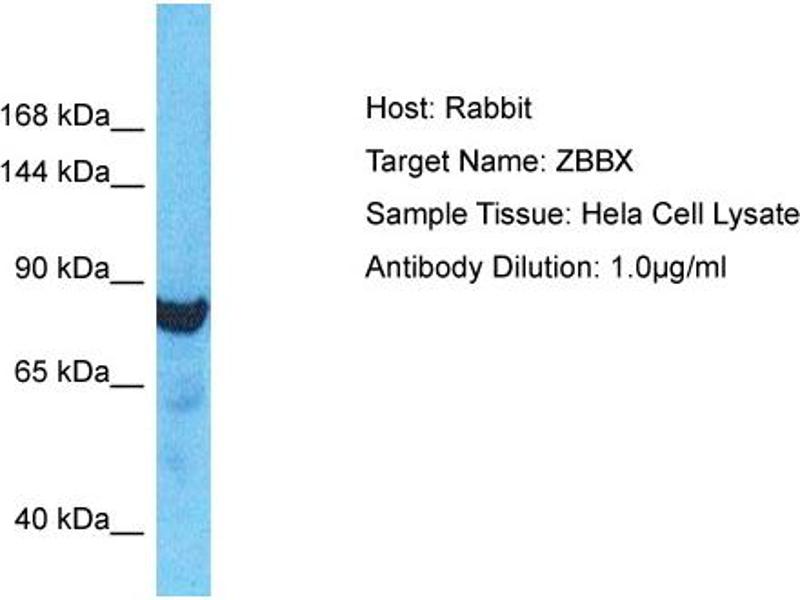 This is a rabbit polyclonal antibody against ZBBX. It was validated on Western Blot.
