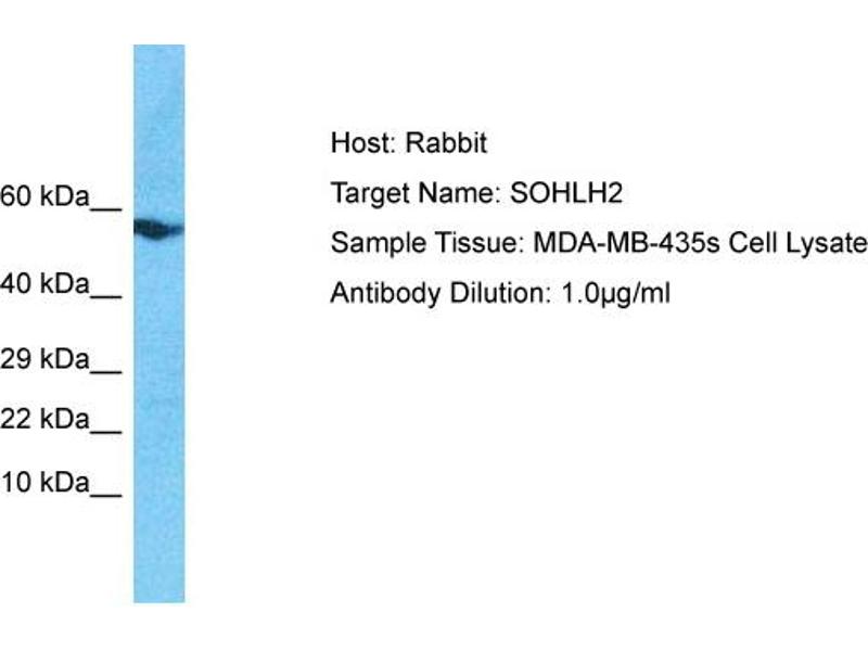 The Rabbit Polyclonal anti-SOHLH2 antibody has been validated for WB. It is suitable to detect SOHLH2 in samples from Human, Dog, Guinea Pig, Mouse and Horse.