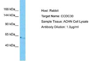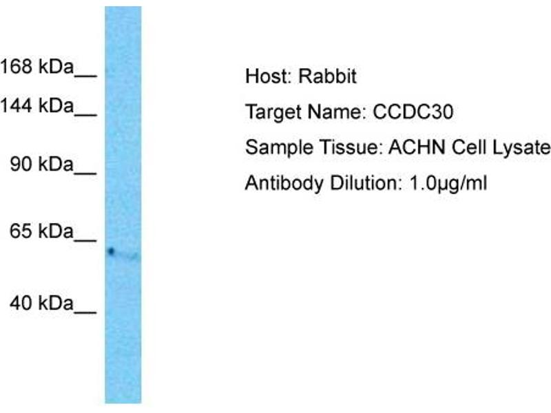 This is a rabbit polyclonal antibody against CCDC30. It was validated on Western Blot.