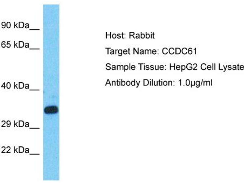 This is a rabbit polyclonal antibody against CCDC61. It was validated on Western Blot.