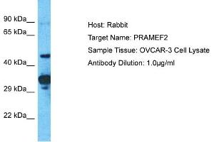 This is a rabbit polyclonal antibody against PRAMEF2. It was validated on Western Blot.