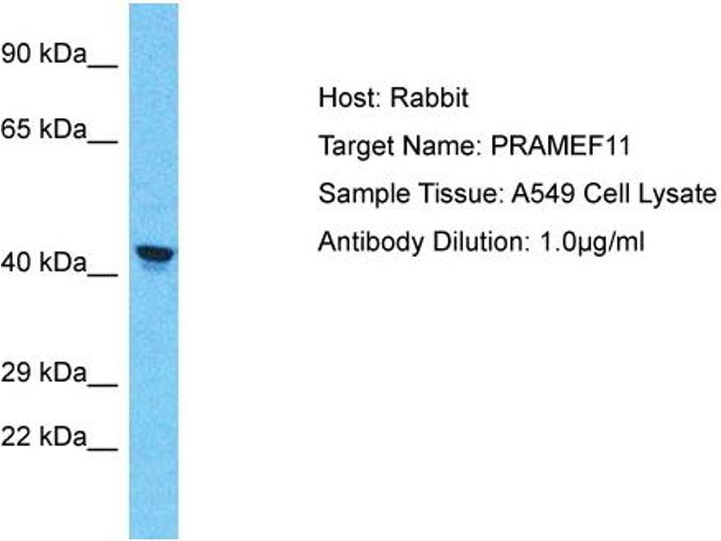 This is a rabbit polyclonal antibody against PRAMEF11. It was validated on Western Blot.